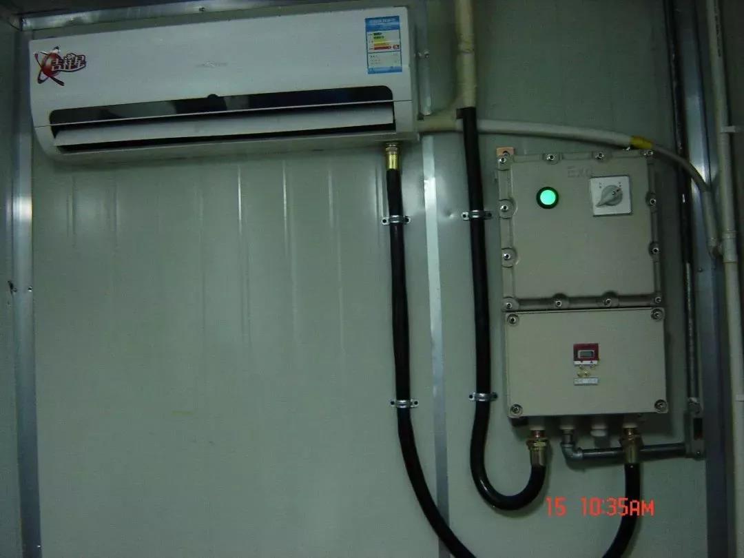 工業防爆空調保持普通空調基礎上,對電氣系統,包括壓縮機、風機、電氣線路進行防爆處理。控制線路采用以光耦固態繼電器為核心的電氣制系統進行整體防爆,原保持原來空調的基本功能下,簡化結構,簡化操作,使設備在性混合氣體環境中能安全使用。