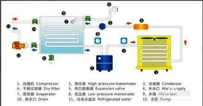 例:求冷(熱)水機(jī)制冷量的計(jì)算方法,有一蓄水箱(溫度7度日容量10立方米),要通過(guò)冷水機(jī)將水在4-5小時(shí)之內(nèi)將溫度升高到15度,需要多少熱量,需要壓縮機(jī)的功率是多少,是怎樣計(jì)算。