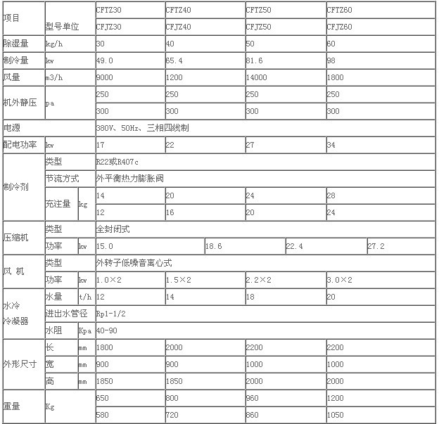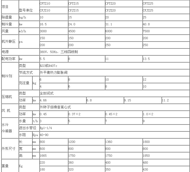 水冷調溫、降溫型常規(guī)除濕機技術指標<1>